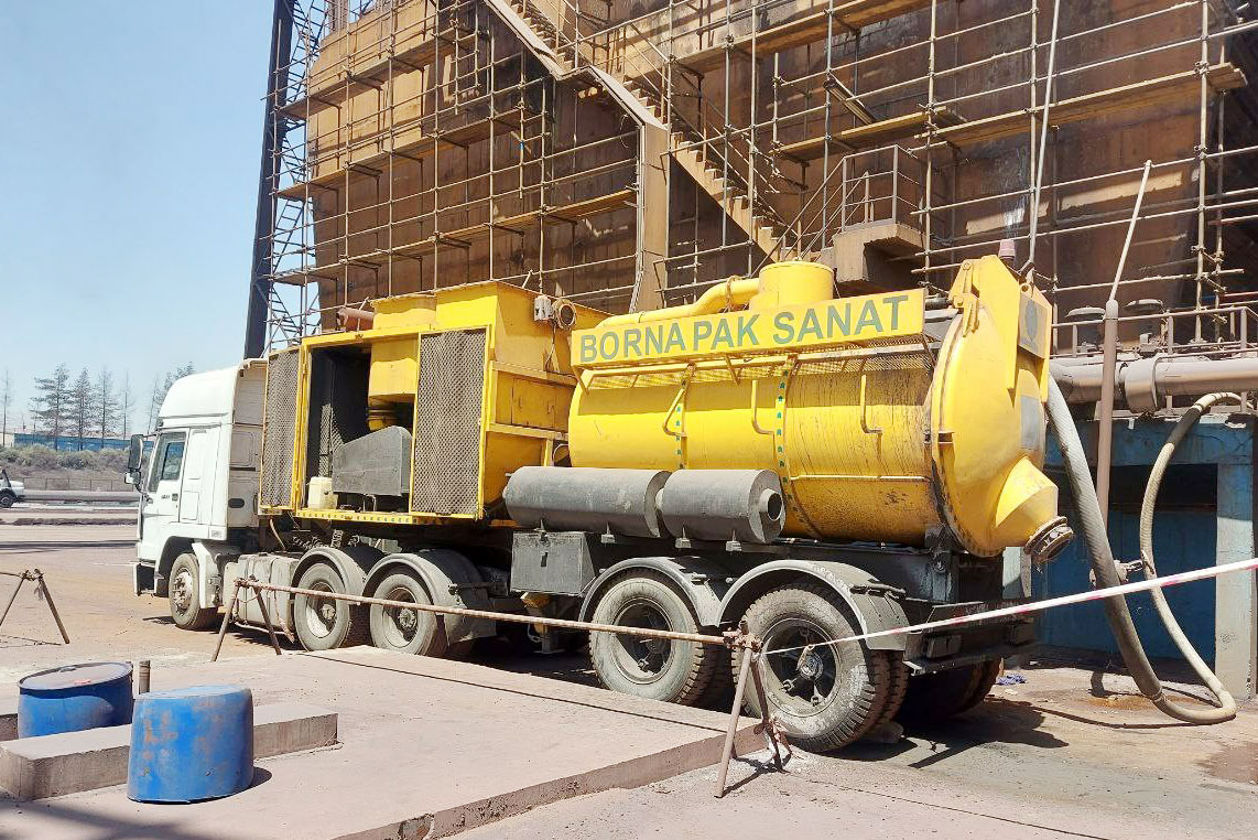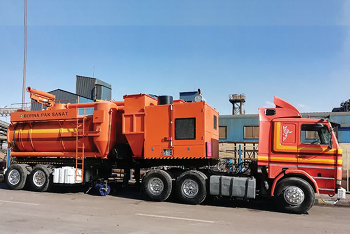 صنایع فولادی، مس و معدنی : نظافت صنعتی و جمع آوری مواد خشک شامل گندله، نرمه آهن اسفنجی، کنسانتره و غبارات موجود در داکت ها، فیلترها و غبارگیرها، ریزش هاي فولادسازي و ریخته گري، نورد سرد و گرم و … ، مواد غیر خشک شامل تخلیه پساب صنعتی، رسوبات و لجن حوضچه هاي مختلف کلاریفایر، کولینگ تاور، پروسس گرم و سرد، حوضچه صنعتی و مخازن سند فیلترها حوضچه ها و چاهک های سیل لگ و …