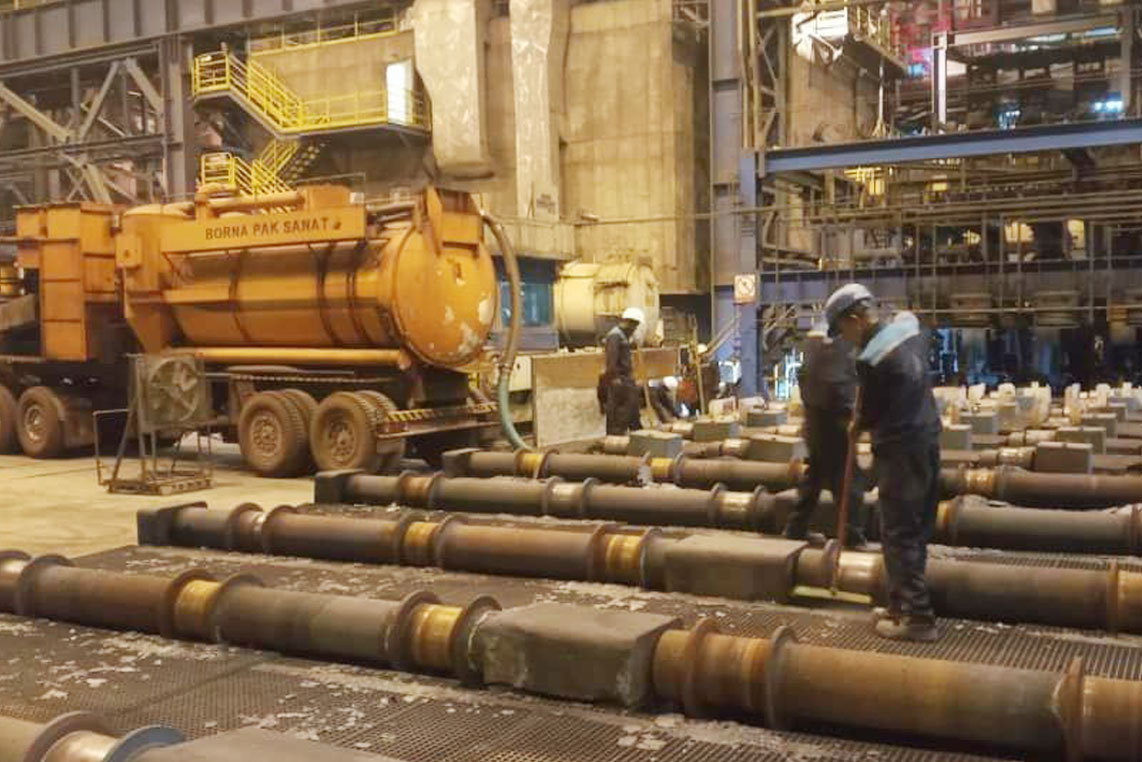 - جمع آوری گرد و غبار و مواد ناشی از ذوب: دستگاه وکیوم لودر انواع گرد و غبار ناشی از عملیات ذوب، پوستههای اکسید، نرمه آهن اسفنجی و گندله را جمع آوری و انتقال میدهد.